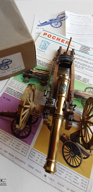 All the series of historical cannons in wood and metal in 1:20 scale was definitely abandoned in 1972 after a fire destroyed the laboratories. The company was founded as Pocher Micromeccanica snc in 1952 by Arnaldo Pocher and Corrado Muratore. The Rivarossi became a partner in 1963 and then acquired full ownership in 1974.