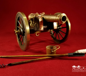 A fine exhibition standard 1:20 scale brass and wood model partially based on an elaborated '60s Italian "Pocher/Rivarossi" vintage model gun from Turin. With realistic plastic spoked wheels, with rims & axel and a smooth, nicely and accurately detailed gun barrel. Scratchbuilt scale water bucket, sponge & rammer heads complete the system. The overall model is 24 cm in lenght. It's finely set in a black matt based showcase. The inscription in the barrell breech shows the name of the swiss manufacturer, Jean Maritz I (1680 - 1743), the first to bore out the Model 1732 system equipments. These standardized pieces became known as the “Vallière System”.