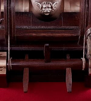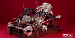A detailed and fully functional mechanism with ropes and brass-made gear wheels for the barrell elevation.
