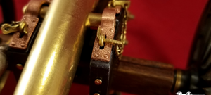 An extremely fine exhibition standard 1:15 scale brass and wood model with plastic spoked wheels, based on a extensively modified '60s Italian "Pocher" vintage model gun and and an entirely scratchbuilt limber with canister shots, common shells, and spherical case shots. Water & grease buckets, sponge & rammer accessories keep the overall harmony of the original Pocher. This model is a unicum of its kind. The overall model is 50 cm in lenght. It's finely set in an highend showcase with a glossy black base made in Germany.